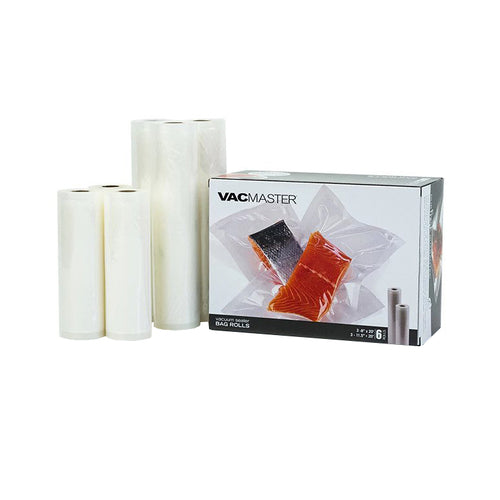 VacMaster® Vacuum Sealer Bag Roll Combo Pack, (3) 8" x 20', (3) 11-1/2" x 20', full mesh, 3-mil (box of 6 rolls)