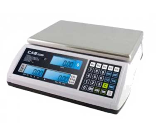 CAS Commercial Price Computing Scale, 30 lb x .006 lb capacity, (3) direct PLU's & (199) indirect, LCD display (display pole not included), raised tactile soft touch keyboard, auto power off, stainless steel platter, rechargeable battery, AC power 120v/60/1-ph, legal for trade