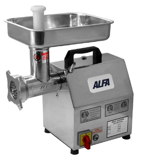 Meat Grinder, electric, 480 lb/hour capacity, #12, includes: (1) meat grinder attachment, (1) meat pan, (2) stainless steel knives, (1) 1/4" plate, (1) 5/16" plate, (1) sausage making tube, (1) stomper, stainless steel construction, 1 HP, 110v/60/1-ph, 8 amps, NEMA 5-15P, ETL