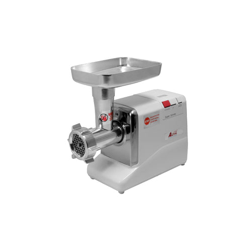 Meat Grinder, electric, 220 lbs. production, die-cast aluminum #12 grinder head, meat pan & auger, attachments: fine, medium & round plates, (1) cutting knife & (3) sausage making tube, 1/2 hp, 115v/60/1-ph, 350 watts