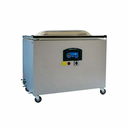 VacMaster® Vacuum Packaging Machine, electric, floor model, 40"W x 22"D x 7"H single chamber, (2) 19-1/2" and (1) 37" removable seal bars, gas flush, sealing option switch, 20-40 second cycle time, digital control panel with pressure indicator, includes: filler, plates, maintenance kit & manual, 3HP rotary oil pump, stainless steel body, 220v/60/3-ph