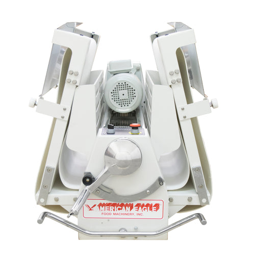 Elite Series Dough Sheeter, bench type, reversible, 17.7" x 67" conveyor with canvas belts, 18.5" stainless steel rollers, 8.82 lbs. dough capacity, gear & chain drive, front mounted controls, safety guard with auto-shutoff, thermal overload protection, adjustable thickness, retractable catch trays, fold up tables, stainless steel & aluminum construction, white enamel finish, 1/2 HP, 220v/60/1-ph, 5.0 amps, CE, cETLus