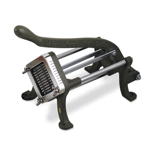 French Fry Cutter, 3/8" sq. cut, potato capacity: 6"L, up to 50 lb. per hour, cast iron handle, stainless steel trough, heavy duty cast body, rust proof, wall or table mounted