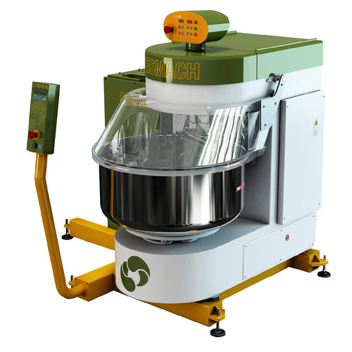 Spiral Mixer, tilting, 35" fixed bowl, capacity: 308 qts (bowl), 275 lbs (flour), 440 lbs (dough), independent 2-speed bowl & arm rotation, programmable digital control, stores up to (9) recipes, lifter control device with two-hand & “hold-to run” push- button panel, stainless steel bowl, dividing blade, spiral arm & grid-style safety guard, green & white powder coated body, hydraulic lifting & tipping system, 220v/60/3-ph, 9.5 kW, UL, CSA (contact factory for price)