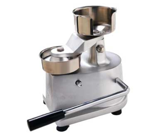 Hamburger Press, compact design, anodized aluminum alloy, stainless steel hamburger mold 3.94" diameter, built-in sheet holder included, rubber handle. 12-3/4"H x 10-3/4"W x 8-1/2"D