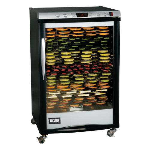 Weston PRO-2400 Dehydrator, single zone, 160 liter/(24) tray capacity, digital temperature control and timer with automatic shut off, rear wall LED lights, fully insulated housing, steel alloy body, 1600 watts, 120v/60/1-ph, UL