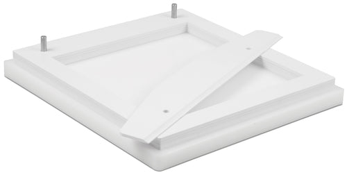 Martellato Ganache Leveling Frame Set, 9-1/2" x 9-1/2", includes: (1) 13-3/8" x 12-1/2" solid base, (2) 5mm frames, (2) 3mm frames, and a leveling scraper, plastic, white (works with model# B102)