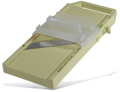 Mr. Slice Mandoline, 13-1/2"L x 5-1/2"W overall, 4-3/4" cutting platform, (1) flat blade cuts from 0.5mm to 3.5mm thick, (1) hand guard included, plastic, green