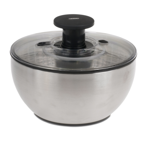 OXO Salad Dryer, 6-1/3 qt., bowl, 4-15/16 qt. basket, pump and brake, transparent lid, non-slip base, stainless steel