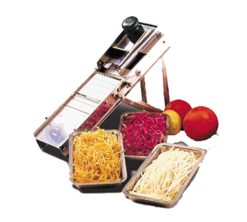 Bron Coucke Mandoline, with hand guard, includes: (1) julienne blade (19638) and (1) flat blade (3802), stainless steel, made in France