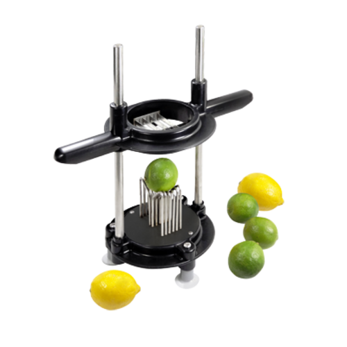 Lemon Slicer, manual, cuts lemons in half slices, stainless steel serrated blades, black ABS base with (3) suction cup feet
