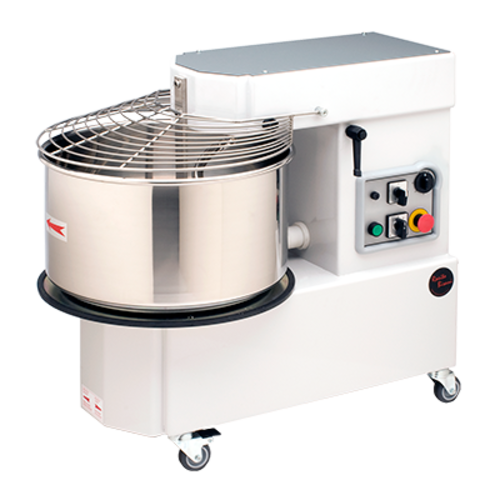 Mecnosud Spiral Dough Mixer, 2-speed, 88 lbs. flour capacity, 79 quart volume capacity, 132 lb. kneading capacity, fixed stainless steel bowl with lift head, geared motor chain drive system, stainless steel frame, braked casters, 220v/60/3-ph, ETLus, NSF