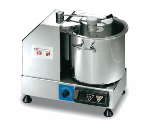 (40801518P) Bowl Cutter/Mixer, electric, variable speed, belt-driven, 6 quart removable bowl with handles & thermal diffusion bottom, see-through lid with 1-1/4" feed opening, removable knives, rotary dial variable speed control, sealed motor & knife shafts, dual safety interlock, includes cleaning spatula & sharpening stone, fan-cooled motor, overload & no-volt release protection, stainless steel construction, 1100 to 2600 rpm, 1/2 HP, 350 watts, ETL-Sanitation
