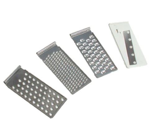 Mandoline Vegetable Slicer, manual, tabletop, includes plastic footed tray with serrator edge at frame bottom, stainless steel blades: (1) slicer, (2) shredders & (1) grater, display box, dozen (LIMITED STOCK – contact factory for availability)