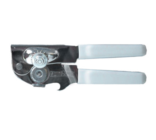 Swing-A-Way Can Opener, manual, hardened and sharpened high carbon cutting wheel, polished steel construction, white