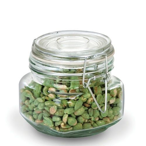 Canister Jar, 17 oz., 4-1/4"W x 4-1/4"H, clamp down lid, round, glass, clear, Heremes (4 each per case)