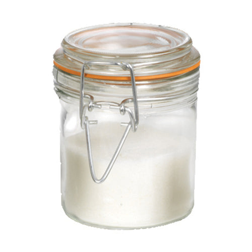Mini Jar, 9-2/5 oz., 4-1/8"H x 3-1/2"W, clamp down lid, round, glass, clear, Heremes (1 dozen per case)