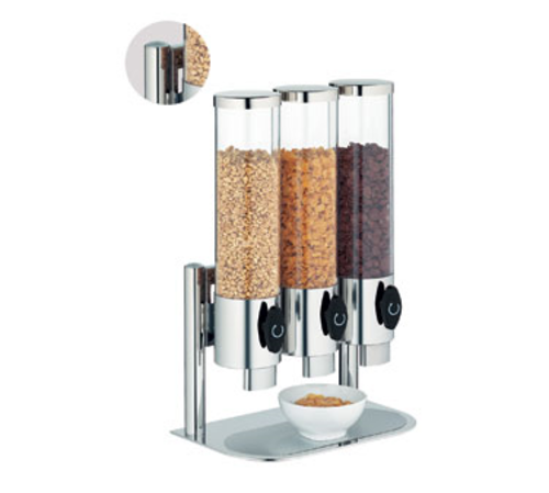 Cereal Dispenser, triple dispensers, 354.9 oz. (118.3 oz. each dispenser), 15-1/4" x 9-3/4" x 23-1/2", dishwasher safe, 18/10 stainless steel top & base, PMMA dispenser, clear, Basic, Change by WMF