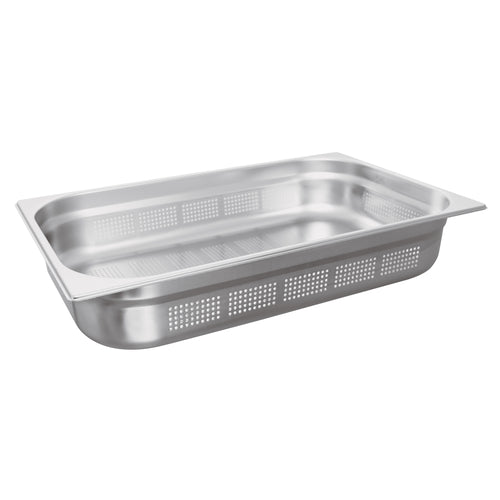 Hotel Pan, 1/1 GN, 20-7/8"L x 12-3/4"W x 4"H, perforated, stainless steel