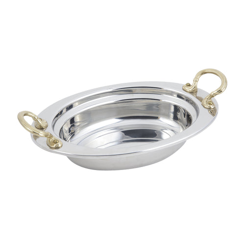 Food Pan, full oval, 2 qt. (64 oz.) capacity, 13-1/8" x 8-7/8" x 2-1/2", with round handles, plain design, stainless steel, NSF, UL