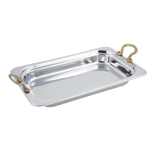 Food Pan, full size, 9 qt. (288 oz.) capacity, 21-1/2" x 13-1/2" x 2-5/8", with round handles, plain design, rectangular, stainless steel, NSF, UL