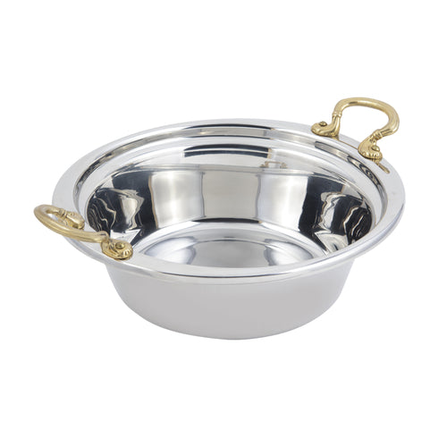 Casserole/Steamtable Dish, 4 qt. (128 oz.) capacity, 13" x 12-1/4" x 4", with round handles, plain on the rim, stainless steel, NSF, UL