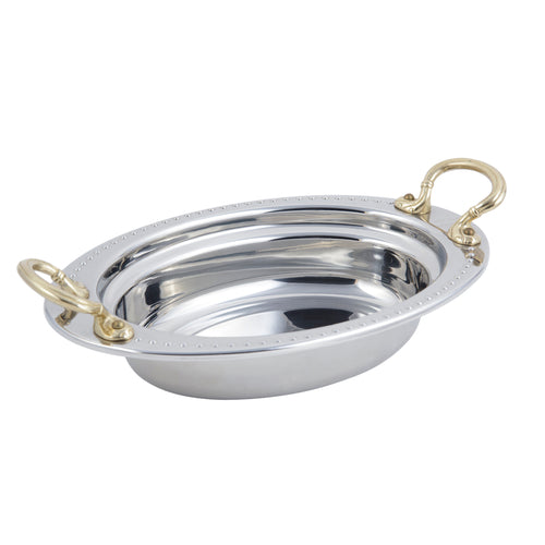 Food Pan, full oval, 2 qt. (64 oz.) capacity, 13-1/8" x 8-7/8" x 2-1/2", with round handles, Bolero design, stainless steel, NSF, UL