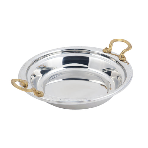 Casserole/Steamtable Dish, 2-1/2 qt. (80 oz.) capacity, 13" x 12-1/4" x 2-5/8", with round handles, Bolero on the rim, vapor lock shoulder, stainless steel, NSF, UL