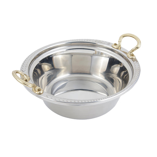 Casserole/Steamtable Dish, 4 qt. (128 oz.) capacity, 13" x 12-1/4" x 4", with round handles, stainless steel, Laurel on the rim, NSF, UL
