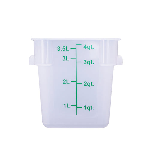 Food Storage Container, 4 qt., square, stackable, dishwasher and freezer safe, temperature resistant from -40°F/-40°C to 160°F/71°C, polypropylene, translucent, BPA free, NSF (QTY break = 12 each)