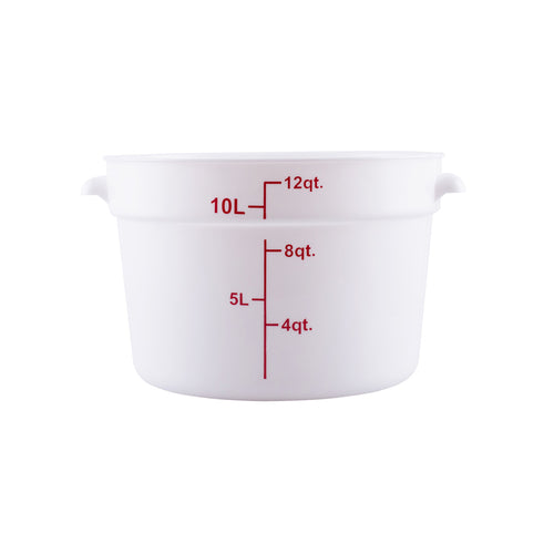 Food Storage Container, 12 qt., round, stackable, dishwasher and freezer safe, temperature resistant from -40°F/-40°C to 160°F/71°C, polypropylene, white, BPA free, NSF (QTY break = 12 each)