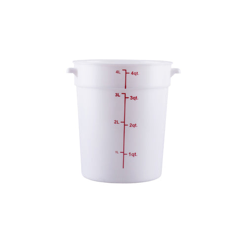 Food Storage Container, 4 qt., round, stackable, dishwasher and freezer safe, temperature resistant from -40°F/-40°C to 160°F/71°C, polypropylene, white, BPA free, NSF (QTY break = 12 each)