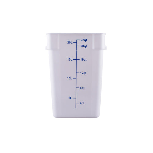 Food Storage Container, 22 qt., square, stackable, dishwasher and freezer safe, temperature resistant from -40°F/-40°C to 160°F/71°C, polypropylene, white, BPA free, NSF (QTY break = 6 each)