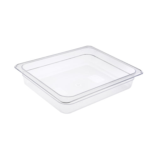 Food Pan, half-size, 2-1/2" deep, rounded corners, with smooth non-stick interior, shatter and scratch resistance, dishwasher and freezer safe, temperature resistance between -40 to 210°F polycarbonate, clear, NSF (QTY break = 12 each)