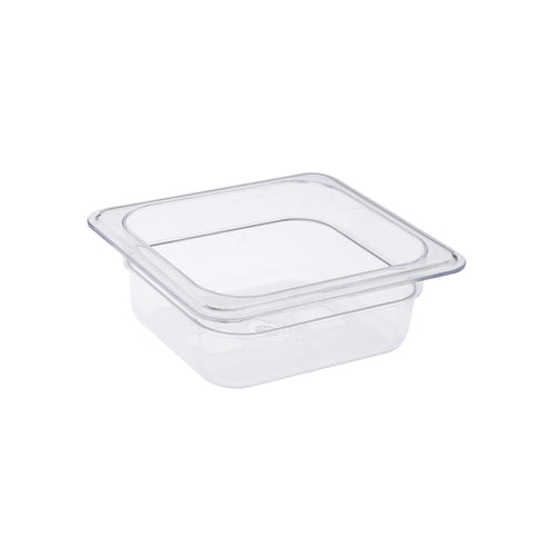 Food Pan, 1/6-size, 2-1/2" deep, rounded corners, with smooth non-stick interior, shatter and scratch resistance, dishwasher and freezer safe, temperature resistance between -40 to 210°F polycarbonate, clear, NSF (QTY break = 12 each)