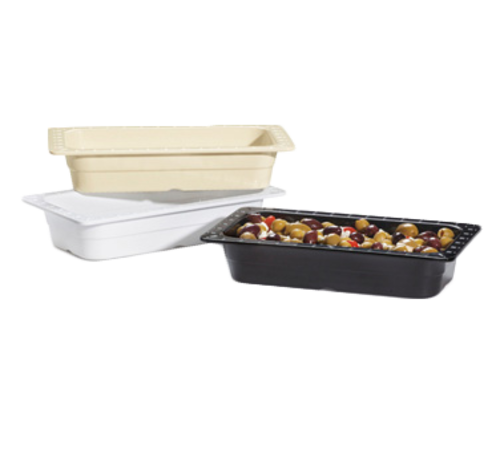Food Pan/Insert Pan, GN 1/3 size (12.80" x 6.93"), 2-1/2" deep, conform to Gastronorm specs & fit standard 12" x 20" opening, for cold application only, break-resistant, dishwasher safe, melamine, black, NSF