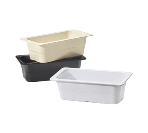 Food Pan/Insert Pan, GN 1/3 size (13" x 7"), 4" deep, conform to Gastronorm specs & fit standard 12" x 20" opening, for cold application only, break-resistant, dishwasher safe, melamine, white, NSF
