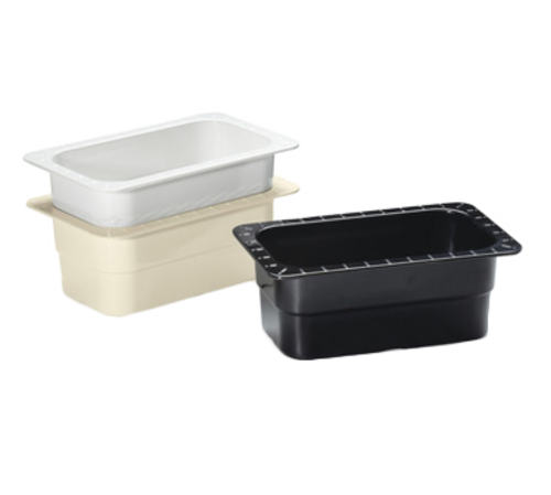 Food Pan/Insert Pan, GN 1/4 size, 10.36" x 6.3" x 4" deep, conform to Gastronorm specs & fit standard 12" x 20" opening, for cold application only, break-resistant, dishwasher safe, melamine, white, NSF