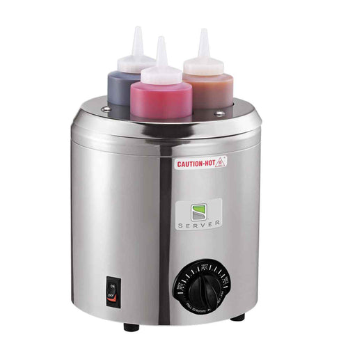 SBW, SIGNATURE TOUCH™ SQUEEZE BOTTLE WARMER, FS base warmer with drop-in bottle holder inset and (3) 16 oz., high-density squeeze bottles (86809), safely heats your low temperature dessert and platescaping toppings, thermostat turns heating element on or off as needed, stainless steel, 500 watts, 120v/60/1-ph, 4.2 amps, cord, NEMA 5-15P, NSF, cULus