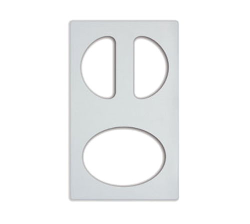 Miramar™ Template, for (1) oval & (2) half oval decorative pans, white stone color, accommodates (1) 8230110 or (1) 8230210 & (2) 8230620 pans, durable FDA approved thermostat resin construction, for hot or cold applications, heat resistant to 300°F (148.8°C), dishwasher safe, underside integral rib design for extra strength & securing template in well, fits all standard 12" x 20" hot/cold wells, warmers & chafers, NSF, Made in USA (contact Vollrath for lead time), made to order, cannot be cancelled or returned