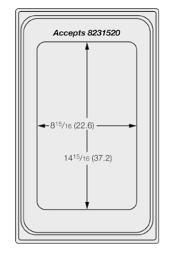 Miramar™ Template, for (1) rectangle (3/4) size) decorative pan, plain stainless, accommodates (1) 8231520 rectangle pan, durable 12 gauge stainless, for hot or cold applications, dishwasher safe, integral corner design on bottom to ensure secure fit in well opening, fits all standard 12" x 20" hot/cold wells, warmers & chafers, NSF, Made in USA (contact Vollrath for lead time), made to order, cannot be cancelled or returned