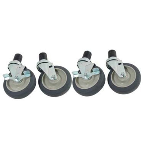 Caster Set, expanding stem, swivel, 1-5/8", (2) 5" stem casters with brake, (2) 5" stem casters without brake, & caster screws, 1000 lbs. load capacity, 6" load height, for most tables & equipment stands with 1-5/8" round or square tubing (NET Price)