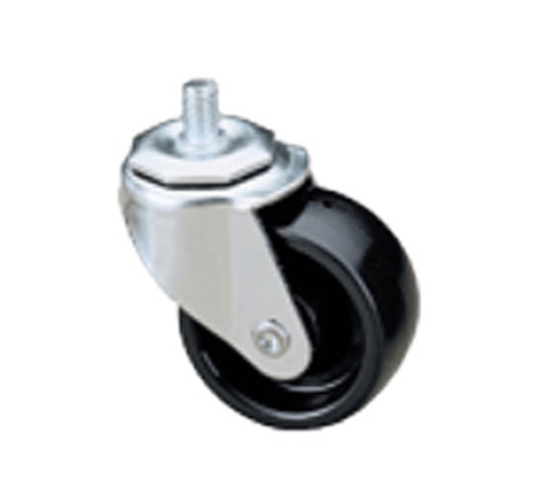 Caster, threaded stem, swivel, light duty, 3" diameter, no ball bearing, no brake, 100 lb. load capacity, black polyolefin wheel