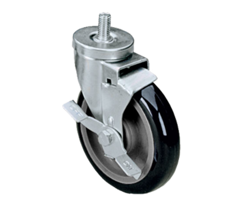 Caster, threaded stem, swivel, medium duty, 5" diameter, no ball bearing, side brake, 250 lb. load capacity, black polyolefin wheel