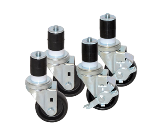 Caster Pack, swivel, 1-5/8" expanding stem, medium duty, 3" diameter, 250 lb. load capacity each, black polyolefin wheel, 2 swivel/2 brake, NSF