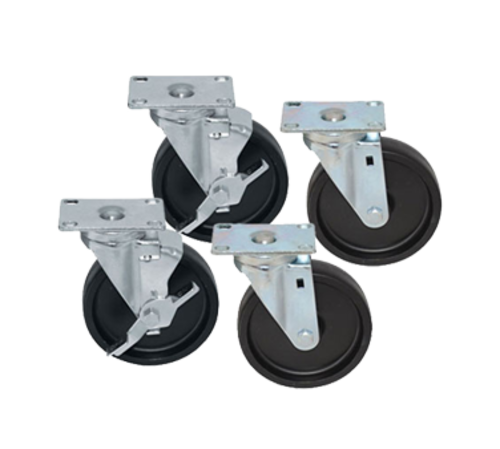 Caster Pack, 2-3/8" X 3-5/8" swivel plate, medium duty, 4" diameter, 250 lb. load capacity each, black polyolefin wheel, 2 swivel/2 brake, NSF