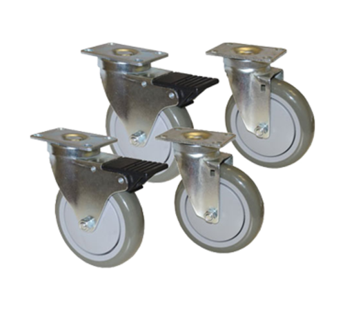 Caster Pack, 2-3/8 X 3-5/8" swivel plate, medium duty, 5" diameter, gray polyurethane wheel, NSF