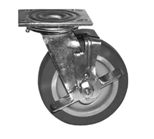 Plate Caster, Brake, 8" wheel diameter, 2" wheel face, 700 lb. capacity, polyurethane tread, EAGLEbrite® zinc, NSF