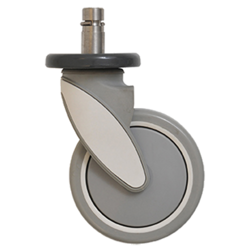Stem Caster, Swivel, delrin bearing, 5" wheel diameter, 1-1/4" wheel face, 250 lb. capacity, polymer with polyurethane tread, donut bumper included, NSF