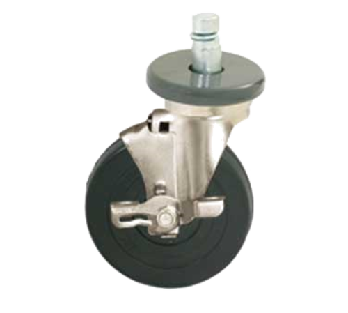Stem Caster, rigid, 5" wheel diameter, 1-1/4" wheel face, 300 lb. capacity, resilient tread, donut bumper included, EAGLEbrite® zinc, NSF